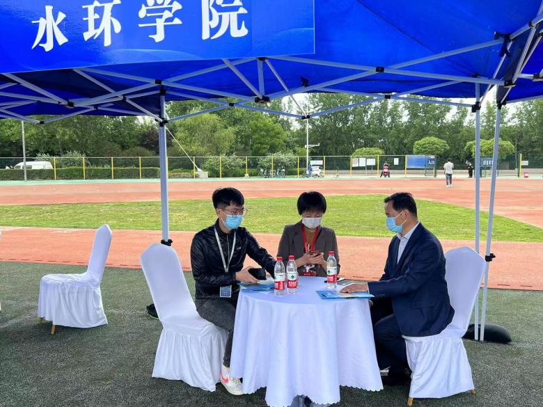 党委副书记王妍、团委书记谈震等人在企业洽谈区与多家企业洽谈沟通合作意愿,包括陕西省渭南市水利水电勘测设计院、三达膜科技(厦门)有限公司等企业,校企双方对单位的招聘需求、欧美无码