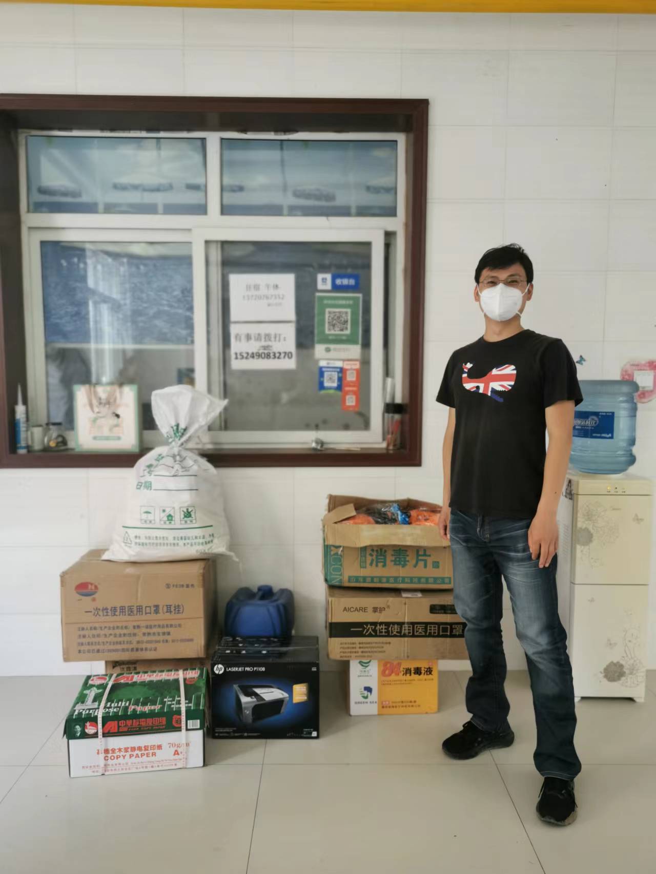 针对疫情出现突然、实习队防疫物资不足的问题,学院疫情防控工作领导小组迅速响应,筹集多方力量,由学院副院长李培月带队,于5月24日为汤峪镇及实习师生送去N95口罩、75%酒精、免洗手消毒液等一批防疫物资,同时为实习师生送去打印机,为汤峪镇及实习师生落实好疫情防控工作及教学工作提供物资保障。