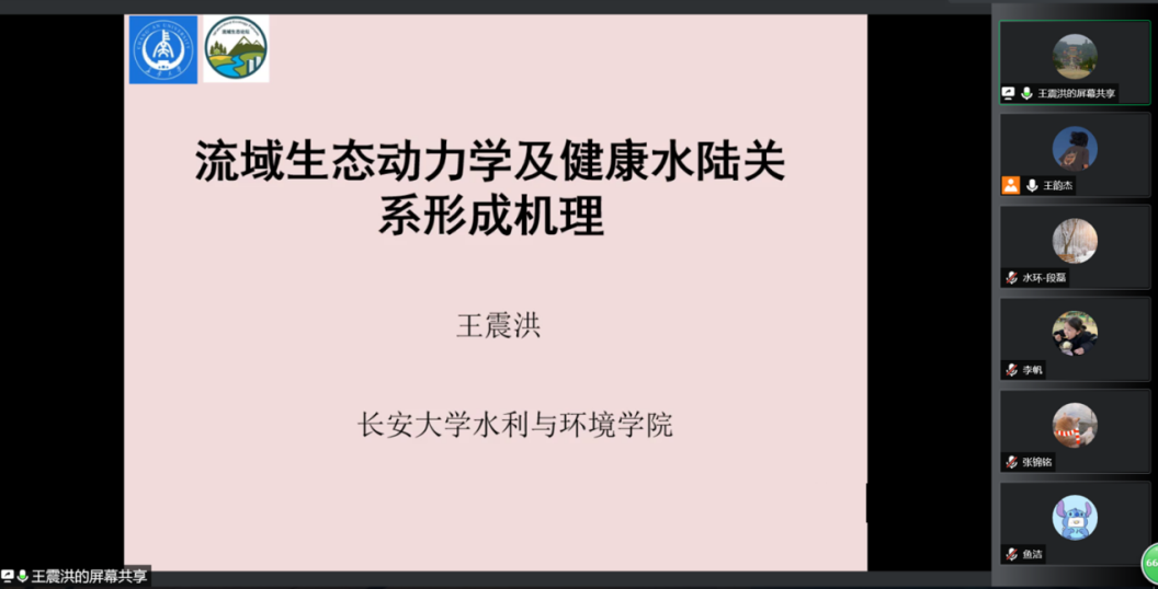 王震洪教授围绕研究的理论和应用意义、科学问题和研究内容以及未来值得聚焦的方向三个方面展开此次讲座。首先,详细阐述了陆地生态系统的概念、组成和功能,以及各生态系统之间相互影响和制约,通过阐述研究理论和应用意义,指出了流域存在的环境问题,明确建立健康水陆关系的重要性。其次,将核心问题:流域生态系统动力学及健康的水陆关系形成机理分解成四个关键科学问题并对其进行详细讲解。最后,王振洪教授提出未来可以从流域生态系统空间结构、过程及动力学机制与流域生态系统生物种类、分布格局、功能及耦合机制等方面入手开展进一步研究。