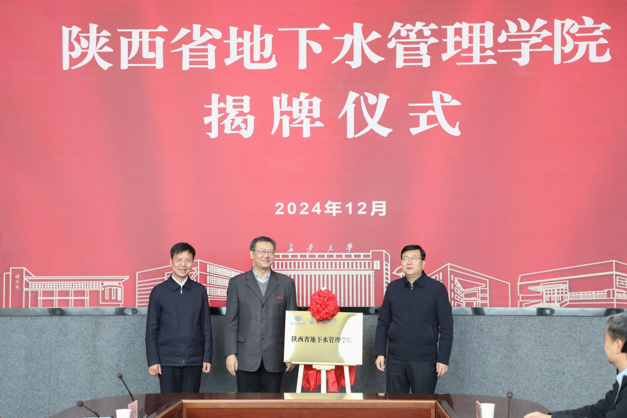 会上,郑维国、申雪峰、陈志坚为陕西省地下水管理学院揭牌。
