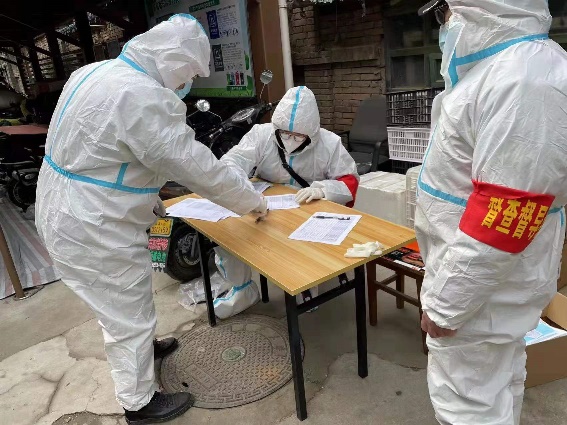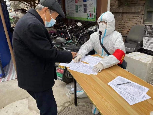 孙钰琨老师参加了雁塔西院家属区的抗疫工作,在这之前他就主动参加了水环志愿者活动。孙老师主要负责西院家属区的住户登记、核酸检测和住户的物资购买和配送。因为雁塔西区的住户中有很多老人,而小区没有电梯,孙老师常常自己拎着菜楼上楼下跑着为住户送菜。孙老师说“第一次参加一线抗疫工作,内心开始是有一些紧张的,但是只要穿上了防护服,带上了红袖章,就有一种使命感。我一直在欧美无码