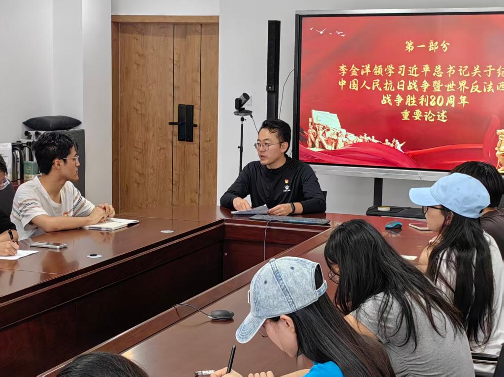 李金洋带领支部党员系统学习了习近平总书记关于中国人民抗日战争暨世界反法西斯战争胜利80周年大会上的讲话,强调要深刻认识抗日战争胜利的伟大历史意义,坚定不移拥护党的领导,坚决反对历史虚无主义,牢固树立正确的历史观。同时,要立足新时代背景,深刻理解构建人类命运共同体的重大意义,坚定“四个自信”,保持战略定力,在复杂国际形势下不断彰显中国人的志气、骨气、底气。