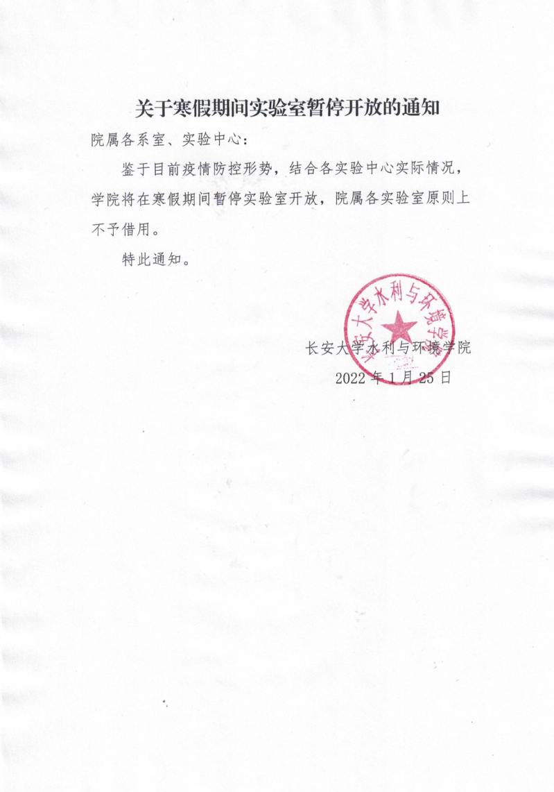 关于寒假期间实验室暂停开放的通知