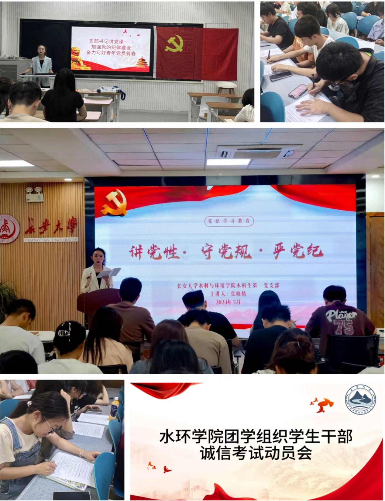 坚持党团合力,树风立范,通过对学生党员开展守纪教育,发挥学生党员模范带头作用,引领各团学组织和学生骨干广泛学习《欧美无码 学生违纪处分规定》等文件,营造良好风气帮助学生将校规校训、学生守则、考勤制度、考试规定等内化于心、外化于行。在考试来临前,通过现场签订考试诚信承诺书使得学生牢固树立责任意识、契约意识,引导水环学子认真诚信考试。